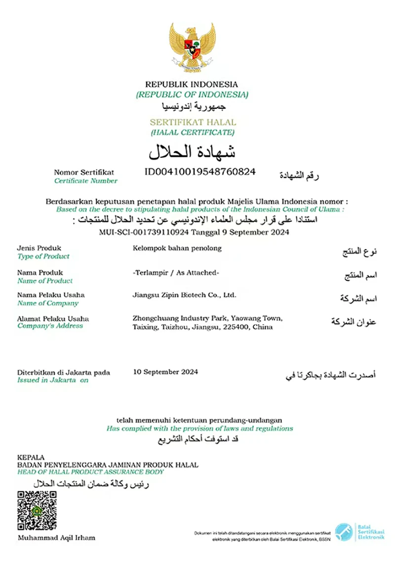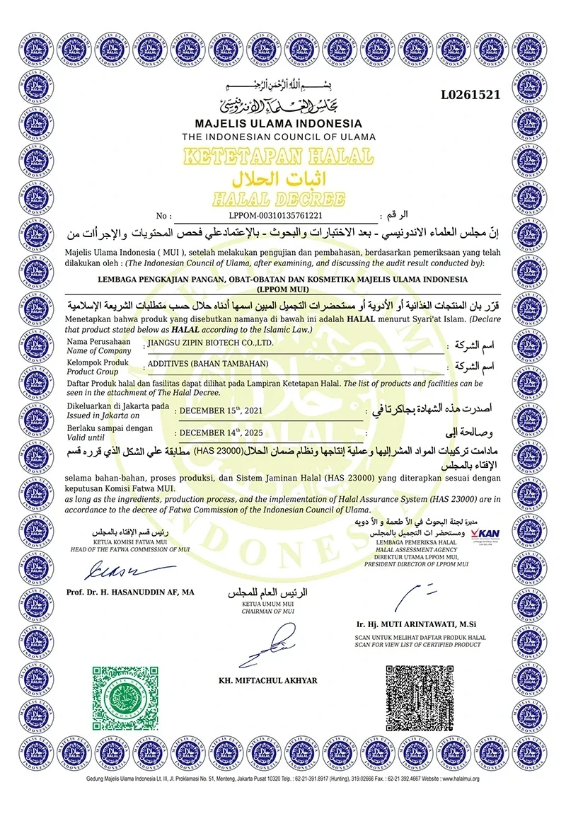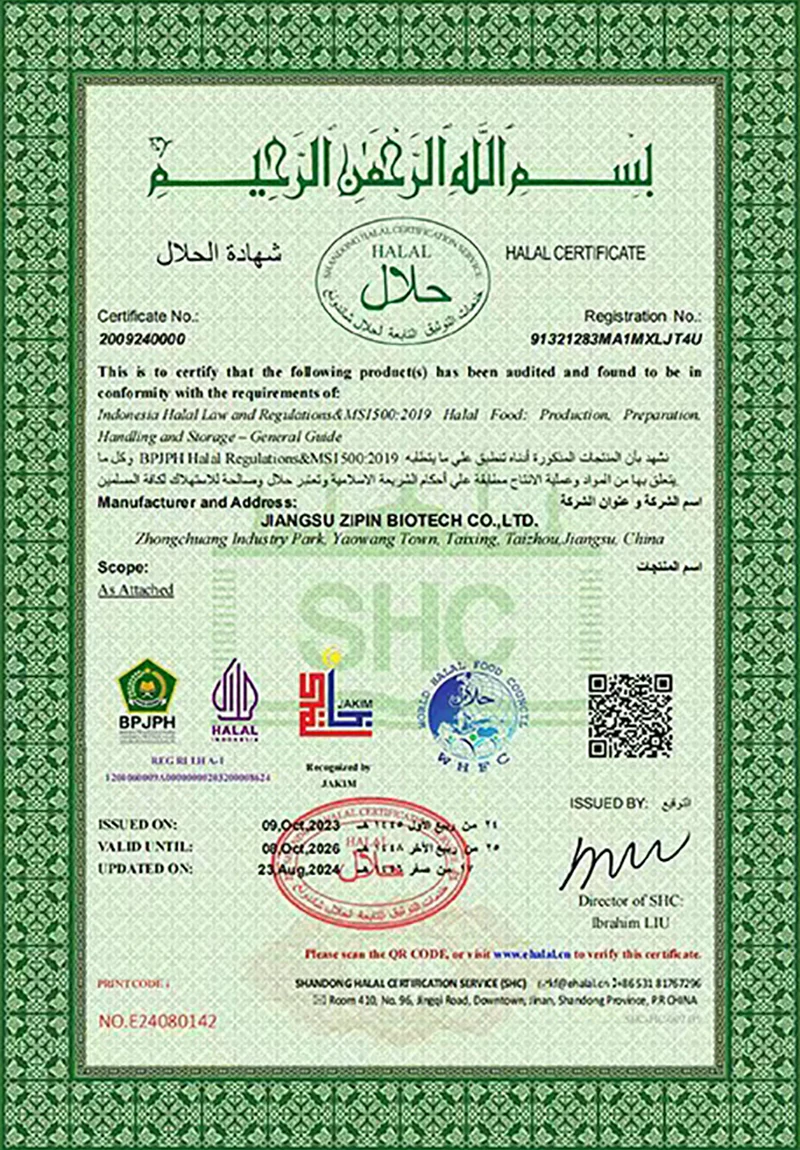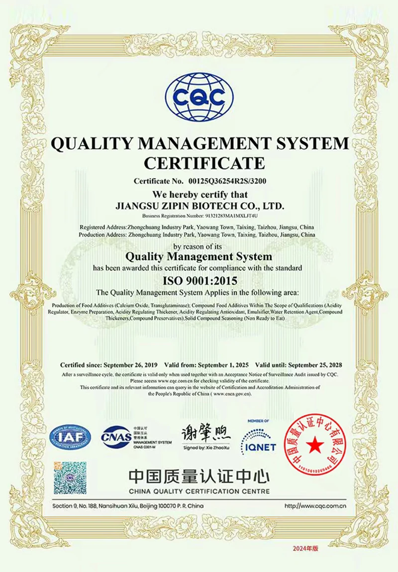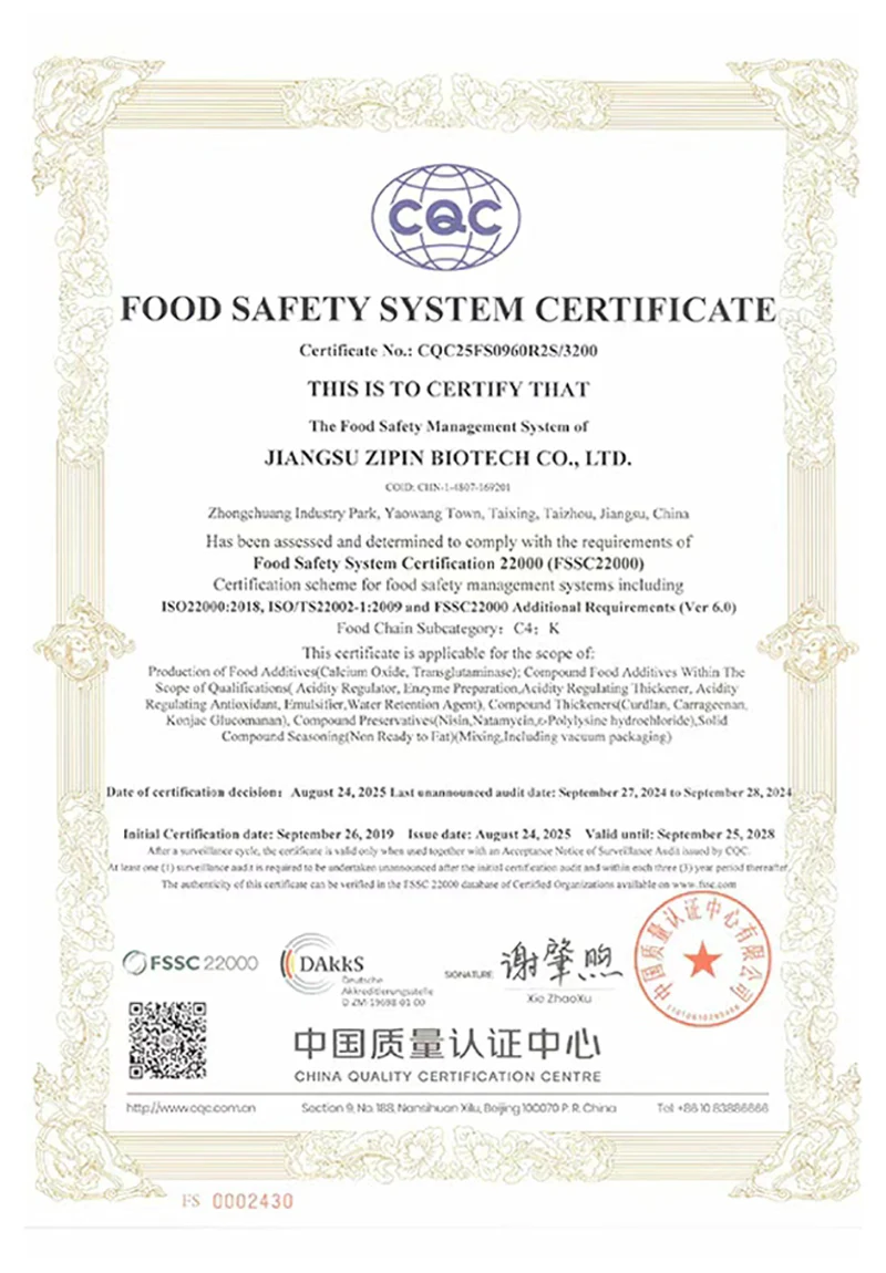 Jiangsu Zipin Biotech Co., Ltd. a été créée en 2016, couvrant une superficie de 20 000㎡. En tant qu'entreprise privée moderne, nous sommes désormais principalement engagés dans la R&D, la production et la vente d'additifs alimentaires. Nos principaux produits sontTransglutaminase, Curdlan, ε-polylysine, Nisine, Natamycine et autres additifs alimentaires.